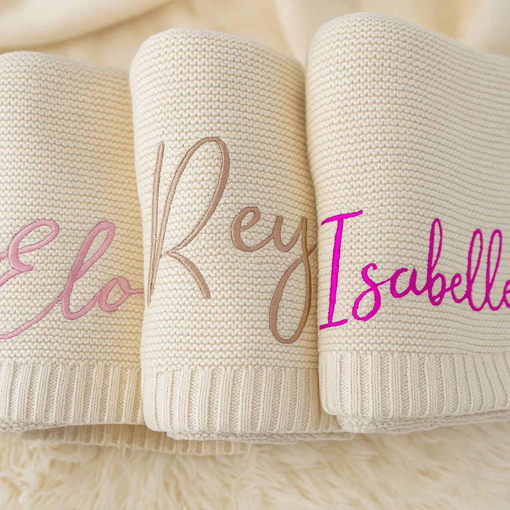 This is the second time I've bought a blanket here and I'm still very satisfied!! Excellent materials, the blanket is warm but breathes very well! The colors and writing design are great! Thank you :) Pvi, here are my choices: Blanket Color: Dark Blue Thread Color: Seed Pearl-8829 Personalization: 1. Ryan 2. Vivian Police